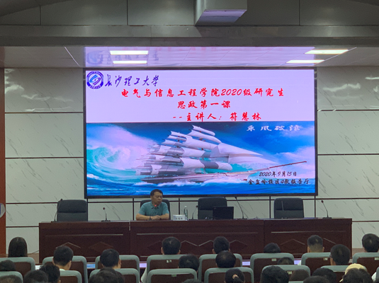 电气与信息工程学院的第一课开始前,首先播放了“长理榜样”演讲会视频,向广大新生党员展示了电气学院教师团队敢为人先、甘于奉献的风采。党委书记符慧林在党课中对新生提出了三点希望,一是明确身份,明确读书的目的;二是注重全面发展,学会与人共事与合作;三是重视细节的处理。他寄语广大研究生要珍惜青年的大好时光,树立远大志向,为实现中华民族伟大复兴贡献聪明才智。