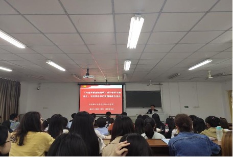马克思主义学院党委书记易显飞以“《习近平谈治国理政》第三卷学习辅导之——习近平总书记治国理政方法论”为主题,从方法论的角度带领大家深入学习习近平总书记关于治国理政的重要论述,指导同学们深刻领悟蕴含其中的历史眼光、战略思维、系统思维、人本立场、创新思维、底线思维、坚持问题导向、知行合一、分类指导及三分法思维。易显飞分享了自己的学习体会,鼓励同学们多读书,读好书,深入学习贯彻习近平新时代中国特色社会主义思想,在学思践悟中牢记初心使命,在知行合一中主动担当作为,在学习和实践中加快成长。