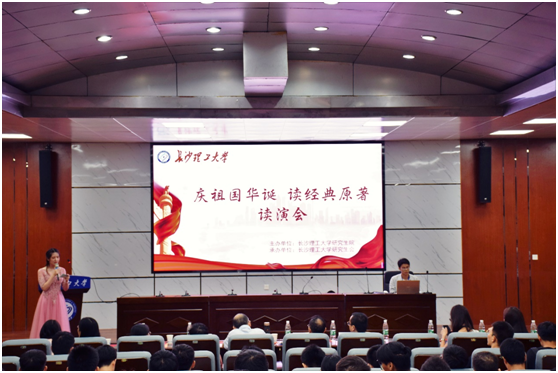 读书是最好的礼物。喜迎新中国成立70周年,厚植研究生爱国主义情怀,营造良好的读书氛围。9月26日晚,在金盆岭校区四教报告厅举办“庆祖国华诞,读经典原著”的分享会。马克思主义学院陈颖教授,经济与管理学院刘绍勤教授,双一流建设办公室赵冰副处长,研究生院副院长兼研工部部长刘亚辉老师,各培养学院辅导员及300名研究生参加了此次活动。