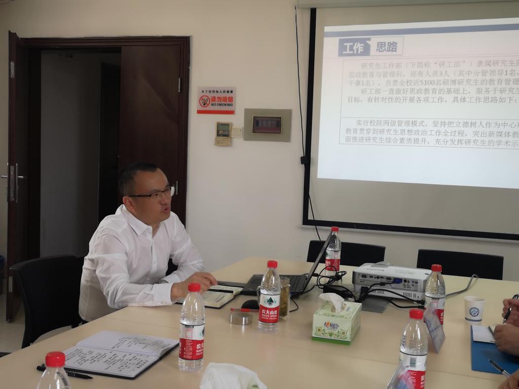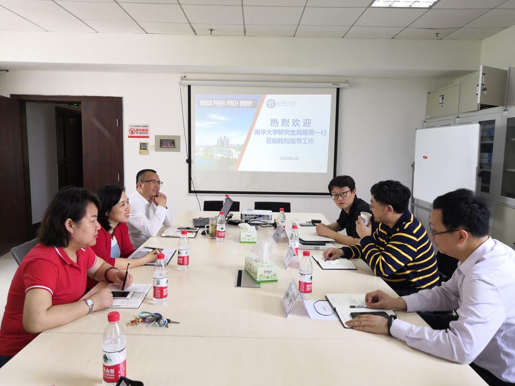 4月25日,南华大学党委研究生工作部部长陈熙一行三人来我校交流研究生思政教育与管理工作。研究生院院长管德清、副院长兼研工部部长刘亚辉和相关人员在云塘校区热情接待客人,并进行座谈。