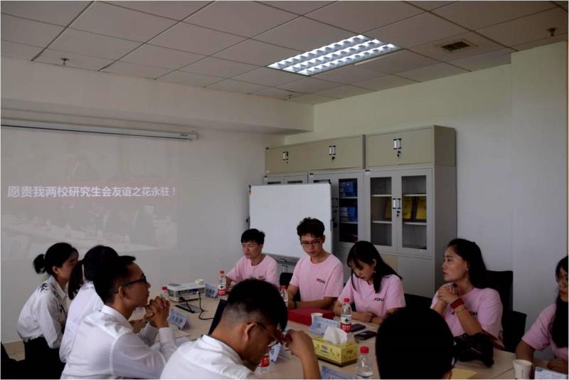 会后,两校师生合影留念。东华大学研究生会代表团对我校的精心安排表示感谢。两校均希望以此次交流学习为契机,搭建两校研究生交流平台,相互取长补短、相互促进、共同发展。