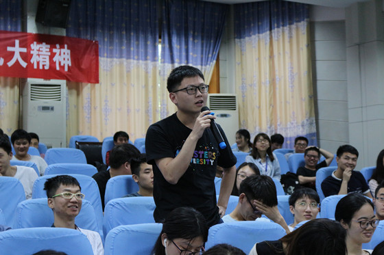 在讲座中,叶正芳和唐青都高度赞扬了计通学院研究生邹勇松同学。邹勇松在病痛中仍胸怀国家使命,凭借着百折不挠、自强不息的励志精神,保持着强烈的求真欲,并为科研坚持不懈地贡献力量,很好地体现了习近平提出的“爱国、励志、求真、力行”的八字箴言,他是新时代青年学习的楷模。邹勇松的励志故事激励了在座的每一位同学,使同学们认识到了肩负的伟大使命。