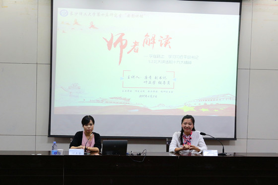 6月5日下午,我校第十届研究生“云影讲坛”之“师者解读”在金盆岭校区12教200开讲。本期“师者解读”的内容为:“学在路上,学习习近平总书记5·2北大师生座谈会上的讲话和十九大精神”。诚邀材料科学与工程学院党委副书记唐青、土木工程学院辅导员叶正芳担任主讲嘉宾,各学院研究生代表参加了此次讲座。