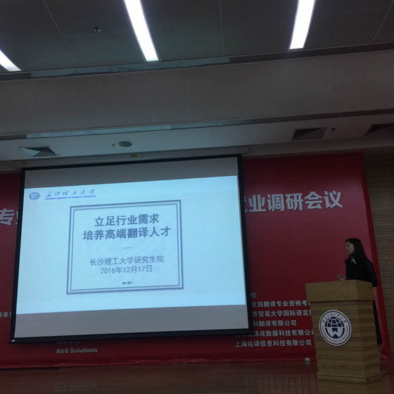 会议由广东省翻译协会秘书长陈定刚博士主持。广东外语外贸大学高级翻译学院院长、全国翻译专业学位研究生教育指导委员会秘书长、广东省翻译协会常务副会长赵军峰教授,中国翻译协会本地化服务委员会副主任崔启亮,中国外文局翻译专业资格考评中心副主任、中国翻译协会理事、全国翻译专业资格(水平)考试英语专家委员会委员卢敏等专家分别就MTI的培养与就业以及语言本地化的发展情况作了主题发言。我校研究生院副院长蒋菲做了“立足行业需求 培养高端翻译人才”的主题发言,从国家、学校层面提出了立足行业需求培养高端翻译人才的现实需求,从学位点建设、课程改革、培养基地、高水平学科竞赛平台、教师队伍建设等五个方面介绍了我校MTI人才培养的实践探索,提出了通过提供优质的培养条件和良好的发展前景,鼓励具有理工科背景的本科生报考翻译硕士;充分利用信息化平台整合社会翻译资源,弥补学校培养条件的不足,提升MTI研究生实践能力的培养;加强与行业企业的联系,了解行业需求,通过定单式培养,实现多赢;增加翻译技术、本地化、技术写作课程等几点思考。蒋菲副院长的发言在与会代表中引起广泛的反响。