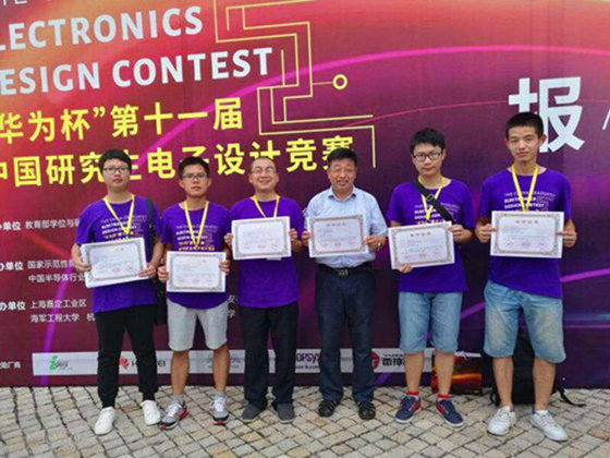 8月17至20日,由教育部学位与研究生教育发展中心、全国工程专业学位研究生教育指导委员会和中国电子学会共同主办、多所知名高校和上海嘉定工业区联合承办的“华为杯”第十一届中国研究生电子设计竞赛决赛在上海嘉定工业区隆重举行。此次大赛全国分七大赛区进行,共有1300余支队伍参赛,各赛区推荐选拔317支队伍参加全国总决赛。我校物理与电子科学学院2支研究生参赛代表队以华中区一等奖入围全国总决赛。经作品演示、现场答辩等环节,康志远、陈浩、刘宇轩的作品《扫描式激光测径系统设计》获总决赛团队一等奖,王磊、谌建飞、杨增健的作品《塞伯睿机器人》获总决赛团队一等奖和商业计划书专项赛二等奖,陈浩、王磊获总决赛个人二等奖项,物电学院唐立军教授获优秀指导教师奖。