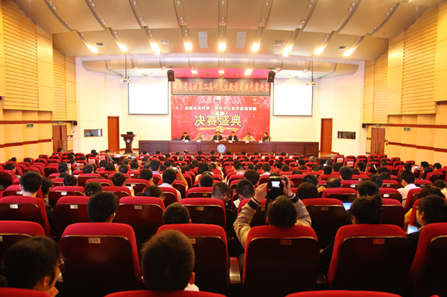 他表示,很荣幸作为两次数模竞赛的承办方,我校将继续发挥主人翁精神,为兄弟高校做好服务,希望以本次大赛为契机,激发广大研究生的求知欲和好奇心,在打好数学理论基础的前提下,培养科学精神,提高创新能力,努力把广大研究生培养成为时代所需的创新型人才,并希望在全省高校和师生的积极参与和支持下,把湖南省研究生数学建模竞赛活动品牌做大、做强、做优,全面助力科教兴省、人才强省战略,为建设“美丽湖南”做出新的更大的贡献。
