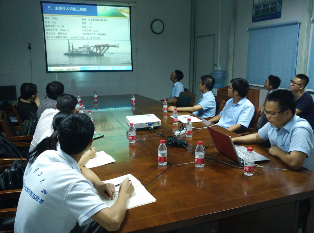 调研期间,调研团队与中交天航局项目经理部工作人员开展了多次交流学习,队员们就环保疏浚的发展现状向项目部工作人员进行深入的了解。通过对环保疏浚设备、环保疏浚技术进行了充分的调研,实践团了解到近年来国内环保疏浚有了很大发展,但与国外技术发达的国家相比还有一定差距。调研团在工作人员的带领下参观了海上的疏浚船舶和施工现场,这对于调研团队将专业知识与实际工程的结合有着积极的作用。