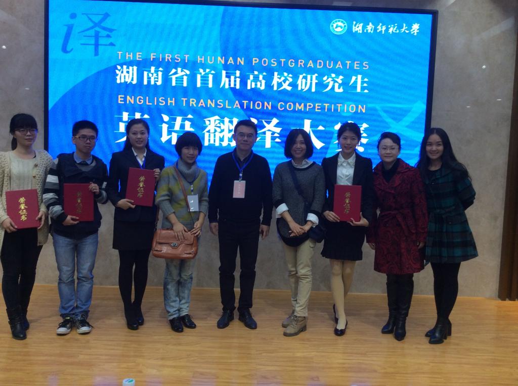 本次比赛经过校内初赛、复赛以及近一个月的悉心准备,最后由我校外国语学院周雪婷、黄月华、边立红、段静、付臻、宋卫阳、许利等老师带队,共派出9名选手参加此次大赛,经过一天激烈的角逐,我校代表队表现不凡,有多项斩获。2014级会计专业刘菁同学在口译比赛中一路过关斩将,晋级到最后一轮,获得口译比赛三等奖,2013级外国语言文学专业的黄韵琴同学获得优胜奖。笔译队2013级外国语言文学专业的禹伟玲、李姝慧,2014级英语笔译专业的郭其桢同学均获得优胜奖。