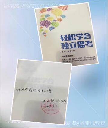 在欢快的音乐中,每一位新生依次上台从领导、老师手中领到了签名题词的属于自己的开学礼物,并与出席的领导老师一起合影留念。书既是电气学院全体老师送给新生的礼物,更是对新生的殷切希望,希望所有新生学会独立思考并让思考成为一种习惯。