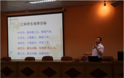 周任军告诫研究生要站在前人的肩膀上看世界。作为一名研究生,我们需要做到精益求精,对前辈们已经提出并有初步成果的课题要继续进行深入研究,发掘自我的兴趣点和闪光点,学会站在巨人的肩膀上看远方。她指出“班门弄斧,自不量力”早已成为过去式,我们应该常与高手过招,用别人的脑袋来武装自己。正因为在“关公面前耍大刀”,我们才有可能发现自己的不足并加以弥补、改进和提升。