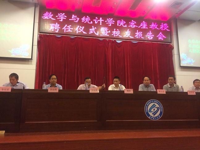 2016年10月9日19:00,数学与统计学院客座教授聘任仪式暨校友报告会在云塘校区图书馆报告厅隆重举行。校领导黄立宏、文先明,数统学院院长李应求,材料学院党委书记张国强,数统学院党委副书记涂道勇,副院长黄创霞以及我校96届数学系校友、上海证券交易所资本市场研究所所长兼发行上市部总监魏刚博士出席了本次会议,数统学院300多名师生参加了本次报告会。