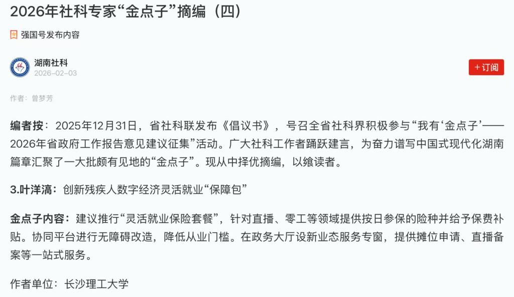 此次被采纳的两项“金点子”紧扣湖南发展实际,聚焦数字贸易与新业态就业等关键领域,为相关政策制定提出了具有前瞻性和操作性的真招实策。