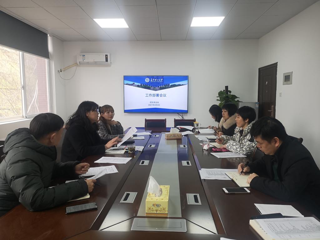 3月3日下午,招生就业处召开全体会议,学习传达学习2025年新澳门原料网站2021年工作要点,全面推进落实上半年招生就业处工作。会议由曹瑛处长主持。