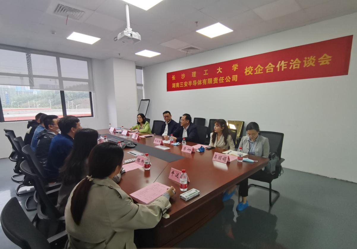 为积极响应教育部关于“开展全国高校书记校长访企拓岗促就业专项行动”的号召,进一步加强校企合作、供需对接,拓宽毕业生就业渠道,着眼长远构建市场化社会化的就业工作机制。2022年4月29日下午,我校副校长刘朝晖、物电学学院党委书记张国强、招就处副处长李娜、物电学学院党委副书记宋国宁携物电学院老师一行6人前往湖南三安半导体有限责任公司进行交流。